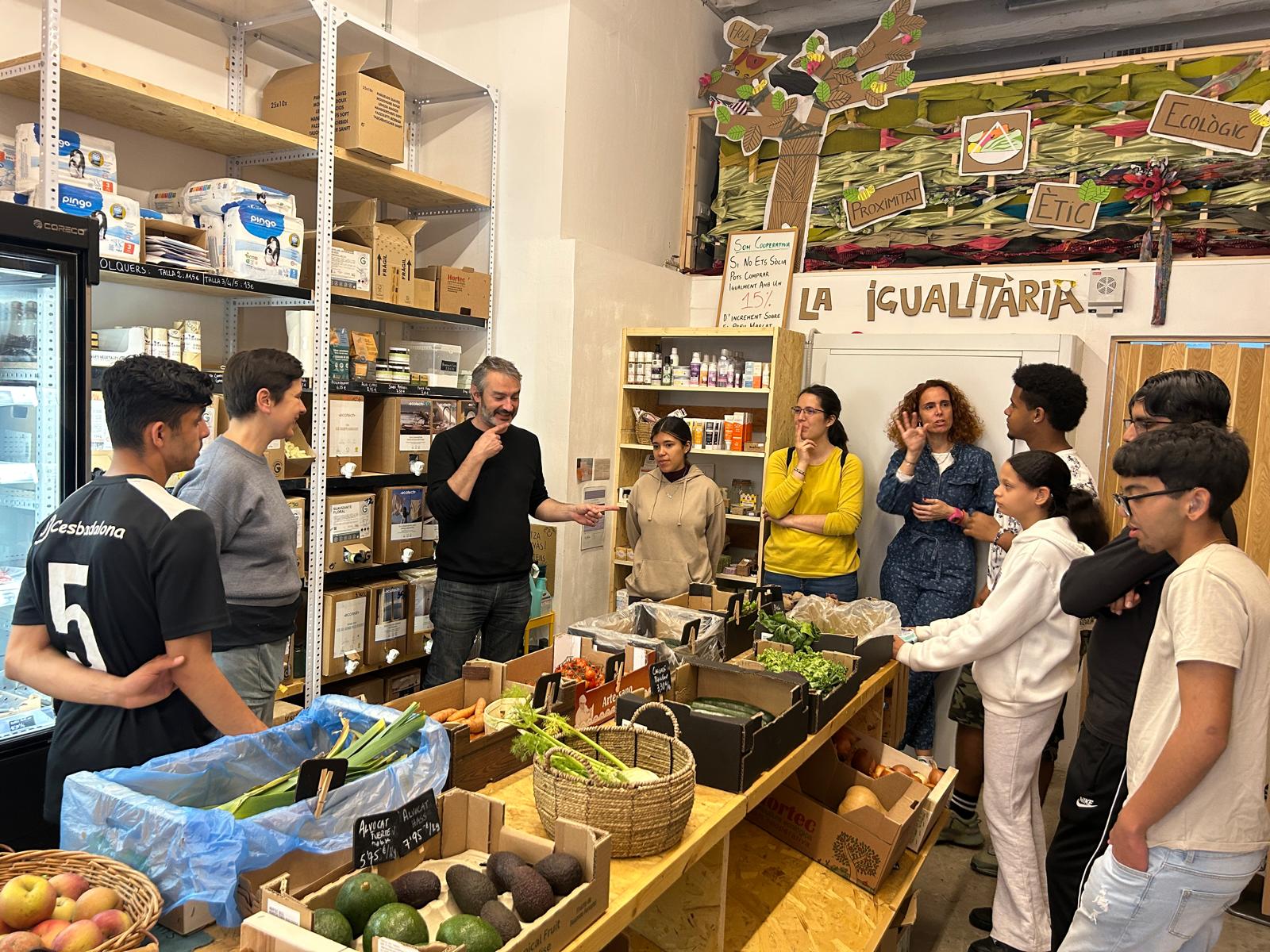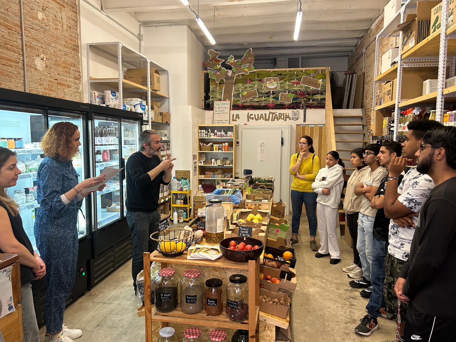 Un comercio sostenible y respetuoso con el medio ambiente es posible. Hoy algunos alumnos han conocido los objetivos de La Igualitaria, una tienda cooperativa autogestionada de productos de proximidad y ecológicos de la ciudad de Barcelona. Se ha podido realizar en el marco de las actividades propuestas por "Comerç i Escoles".